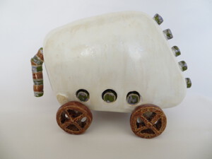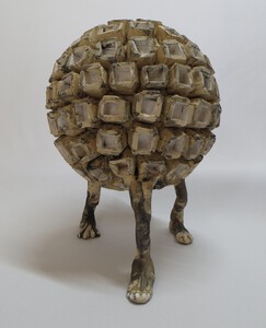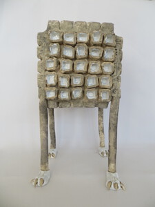 2022Dit is de eerste van de kubussoort die ik heb gemaakt. Een vierkant met allemaal ruimten die je zou kunnen zien als kamer. Hoewel de buitenkant van de Kubus grauw is, zijn de kamers allemaal wit en licht. De kubus heeft benen en kan daardoor zelf een plek uitzoeken waarhet goed toeven is. Kubus is de eerste van zijn soort, maar niet de laatste.